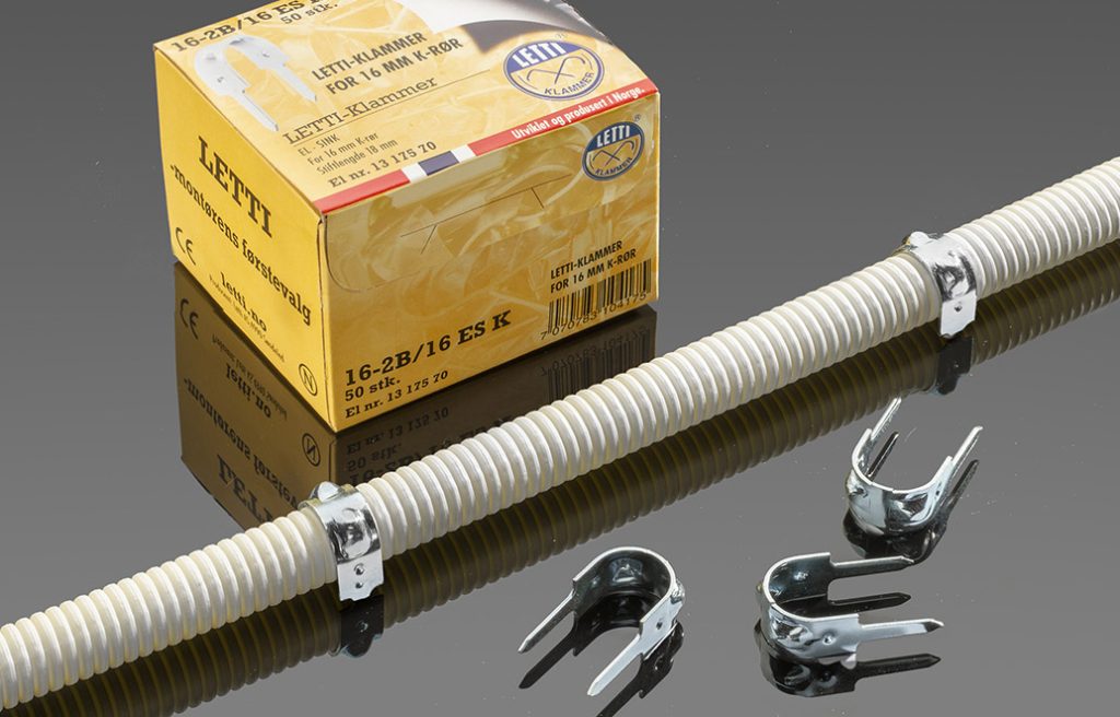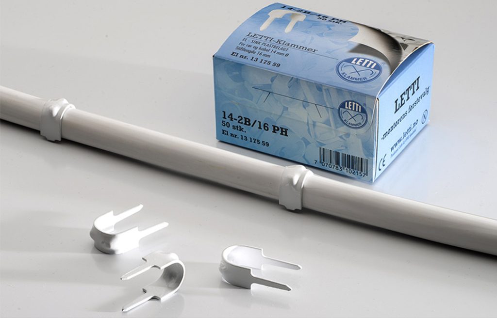 Letti tostift rør- og kabelklammer gir både godt feste og et pent sluttresultat. De produseres i en rekke dimensjoner og overflater tilpasset markedets mest brukte rør- og kabeldimensjoner. Ikke rart at Letti er montørens førstevalg.