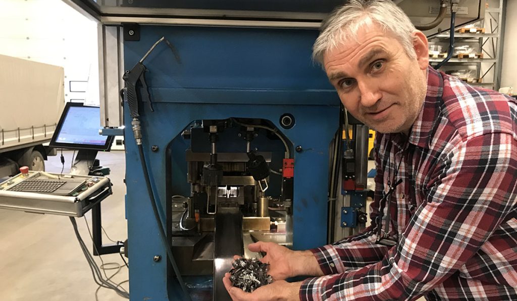 Teknisk leder Rune Dalen forteller at det hver dag håndteres nye ordre, og hos Letti gjør man alt man kan for å tilfredsstille kundenes forventning om rask levering. Men det er mange produksjonsledd fra klammerne blir stanset ut til de er klare for pakking og utsendelse. For å kunne levere kvalitetsprodukter må alle ledd i produksjonen være like gode, og sammen med medarbeiderne på Letti holder Rune et våkent blikk på kvaliteten.
